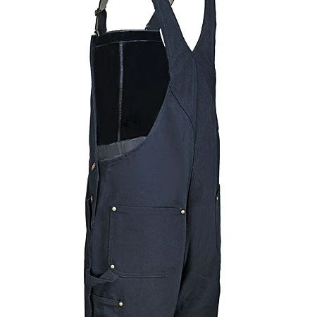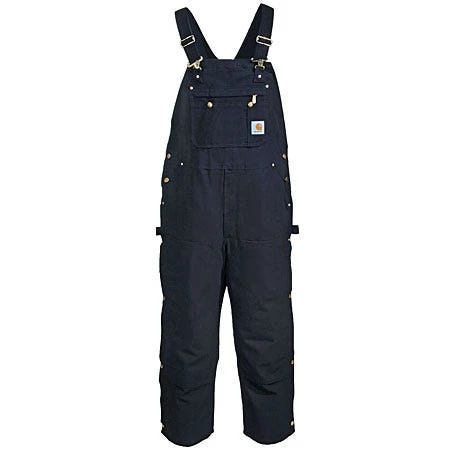 Does dirt stop at waist level? Of course it doesn’t, but work pants do stop at the waist — and that’s why you have so many stained T-shirts. ~Carhartt R37 BLK Black Duck Zip-To-Thigh Unlined Bib Overalls give you coverage all the way up the chest, because your workday is tough from top to bottom.