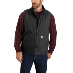Carhartt Vests: Men’s 104394 DKB Dark Brown Relaxed Fit Washed Duck Sherpa-Lined Vest